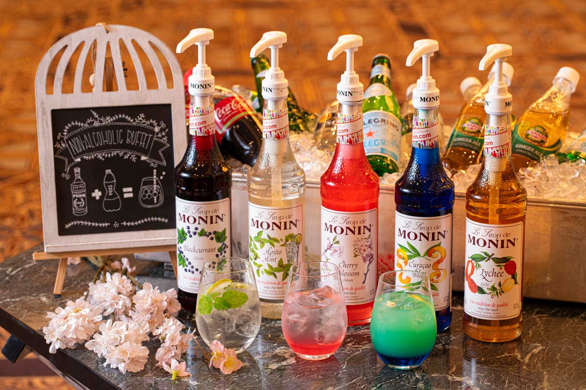 様々なフレーバーのシロップに炭酸水やジンジャーエール、コーラなどをあわせて、オリジナルのカクテルを楽しめるノンアルコールカクテルブッフェ。1日2組様限定で承ります。