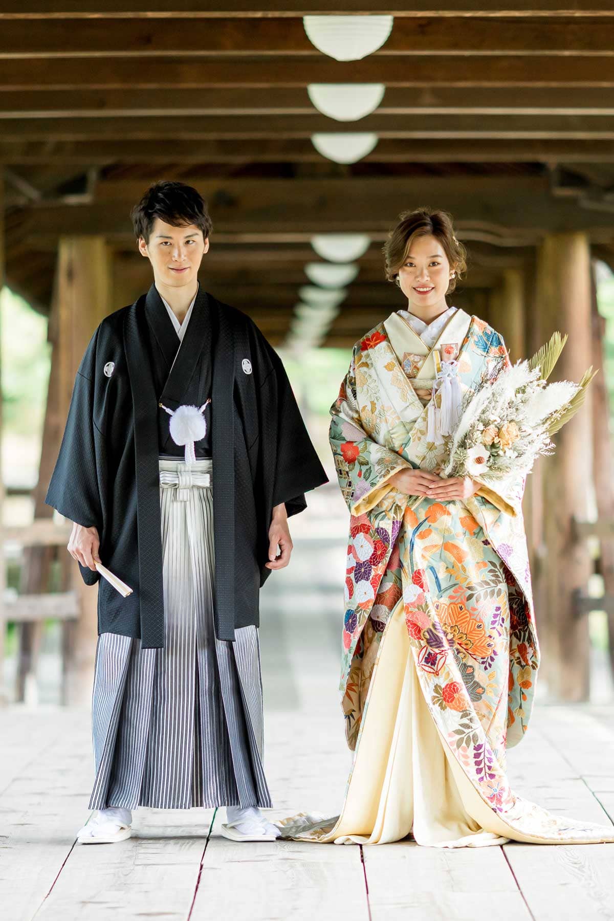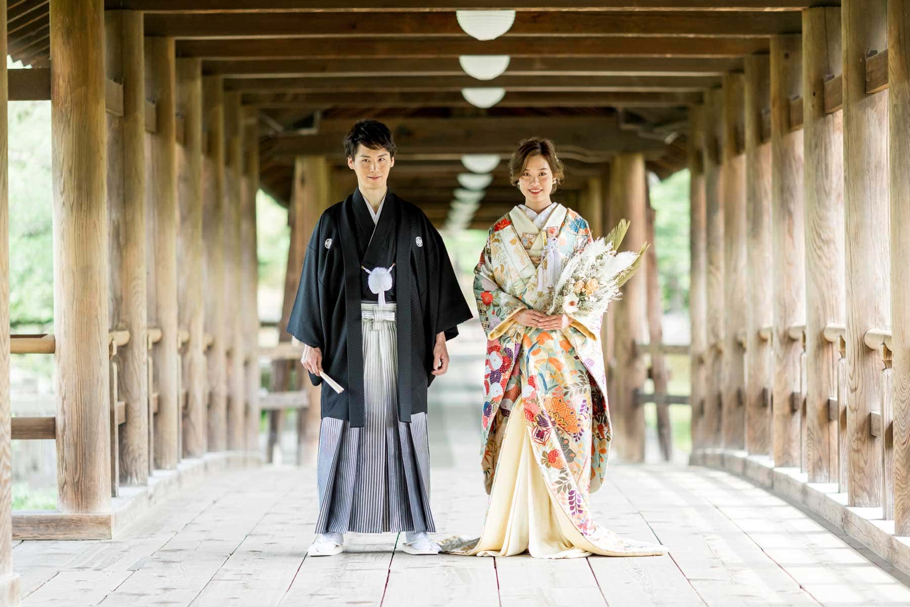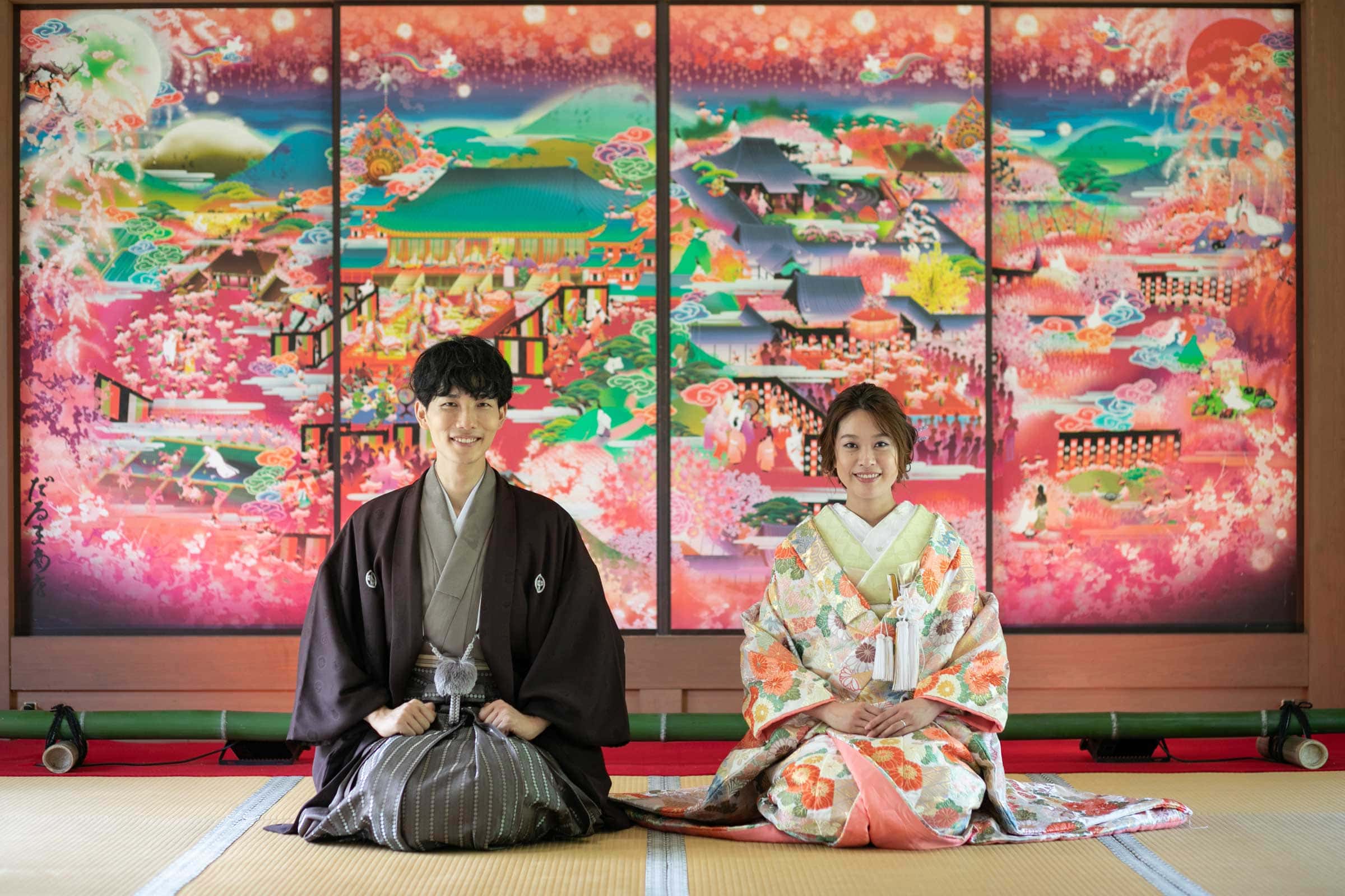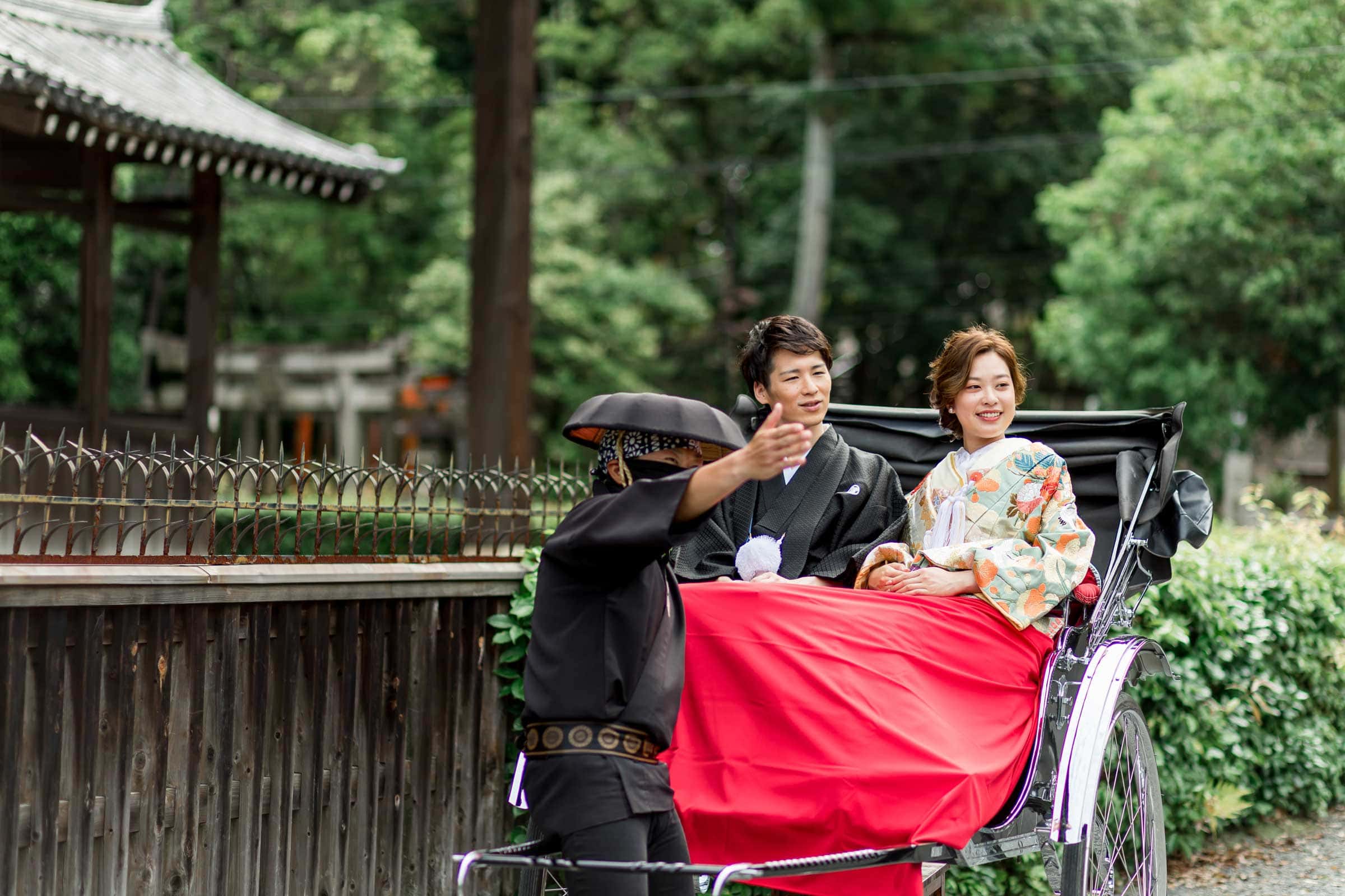 新郎新婦和装衣装レンタル・美容着付各1点/スナップ写真100カット(画像データ)/人力車や御祈願などの「物語」体験/撮影ロケーションまでの送迎/前日からのホテル宿泊ならびにテラスレストランフェリエでのディナー2名様分