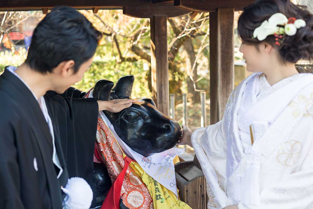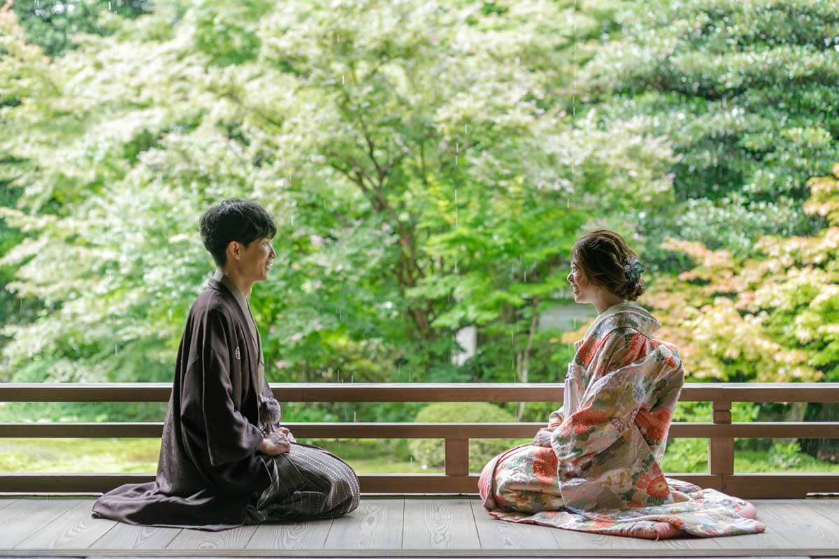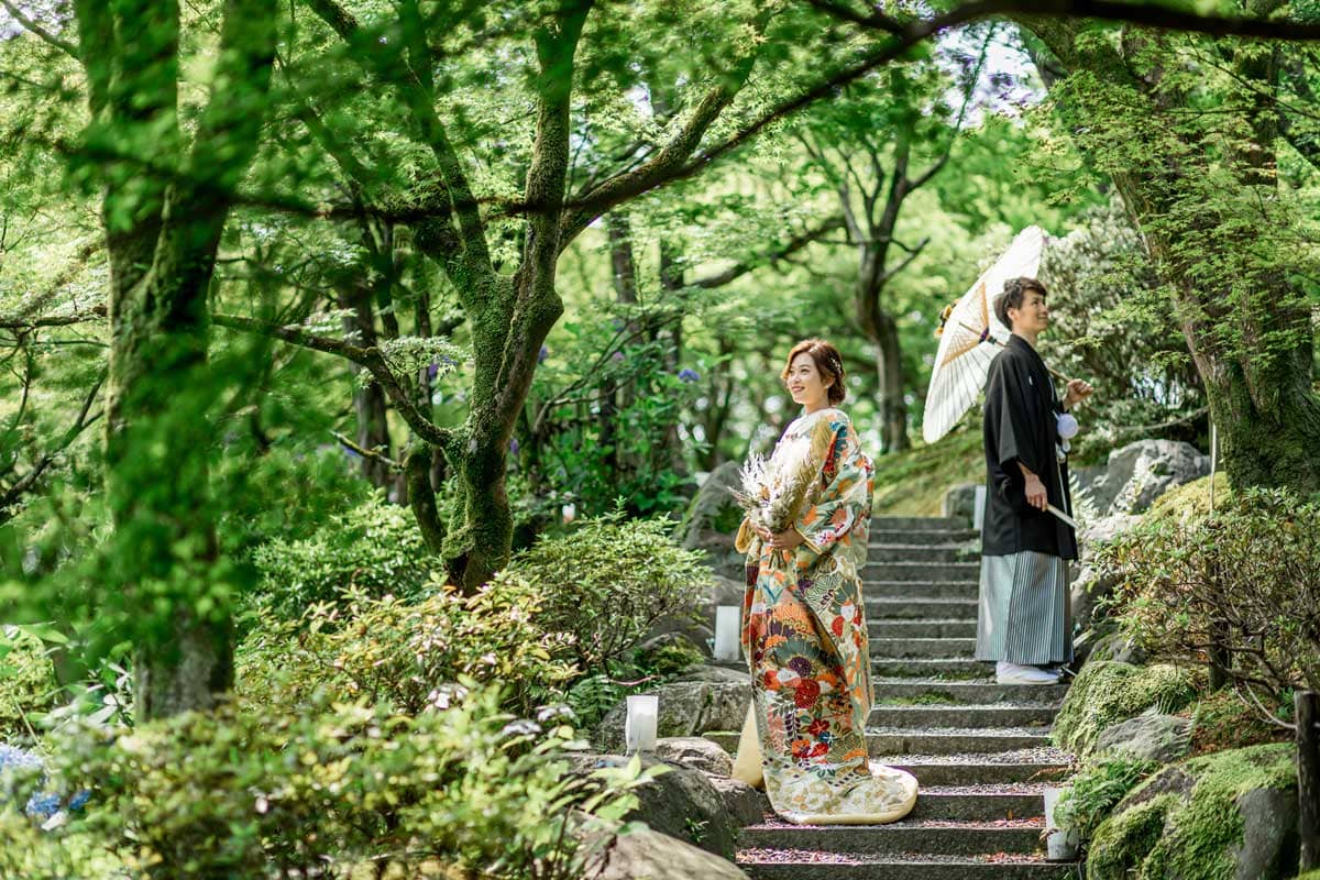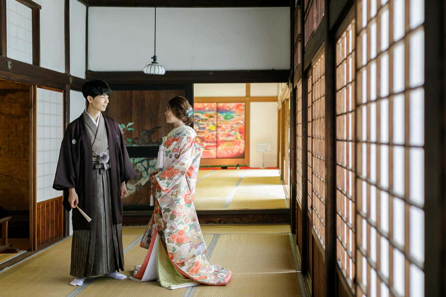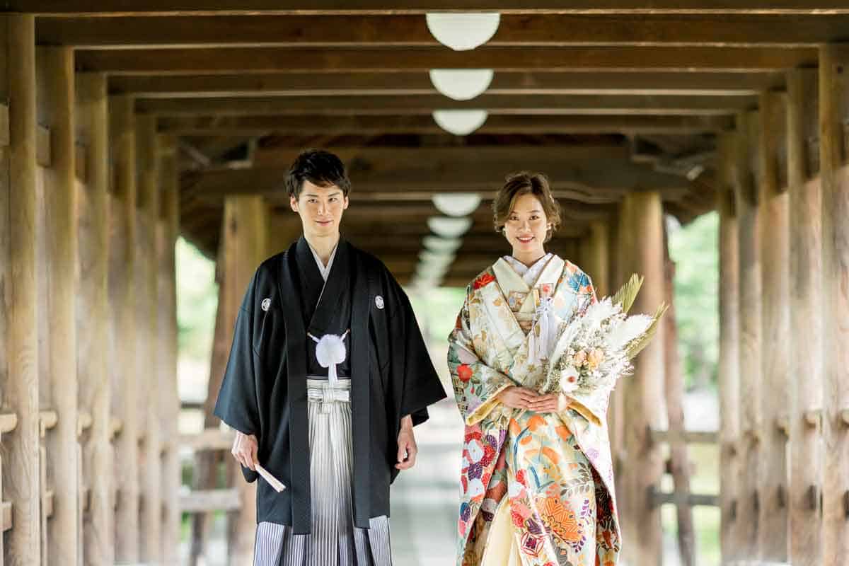 新郎新婦和装衣装レンタル・美容着付各1点/スナップ写真100カット(画像データ)/人力車や御祈願などの「物語」体験/撮影ロケーションまでの送迎/前日からのホテル宿泊ならびにテラスレストランフェリエでのディナー2名様分