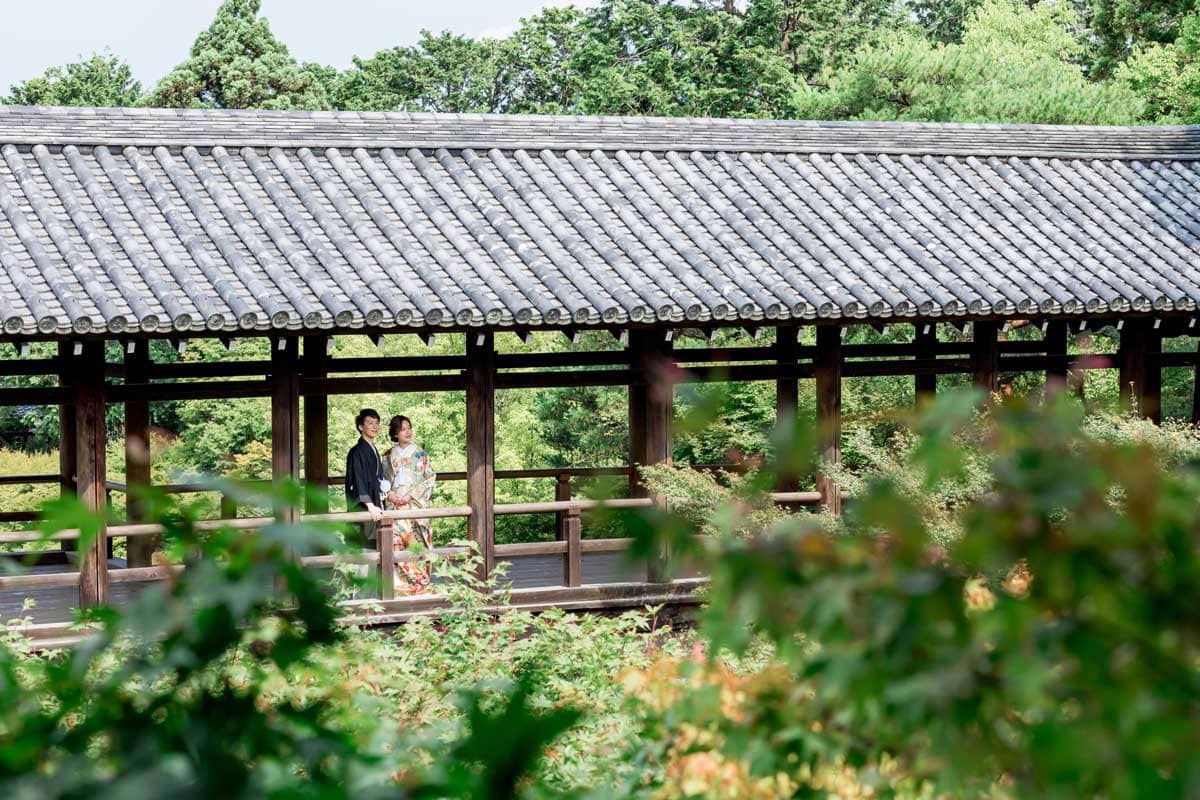 テラスレストラン フェリエ にてご夕食当日6:15〜 新婦様 美容室にてお仕度 7:00〜 新郎様 美容室にてお仕度 8:00 ホテル出発 8:30~ 撮影開始(撮影時間は目安2時間30分) 8:30 通天橋(45分) 9:15 庭園(30分) 9:45 開山堂(15分) 10:00 人力車(1時間) ※ 方丈追加の場合30分追加 11:00 東福寺出発 11:30 ホテル帰館