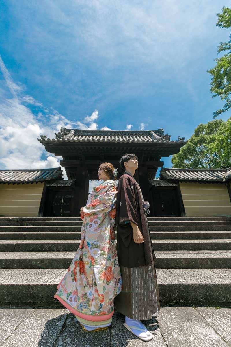 テラスレストラン フェリエ にてご夕食当日6:30〜 新婦様 美容室にてお仕度 7:30〜 新郎様 美容室にてお仕度 8:30 ホテル出発 9:00~ 撮影開始(撮影時間は目安2時間30分) 9:00 御祈願(30分) 9:30 寺内にて撮影(1時間)