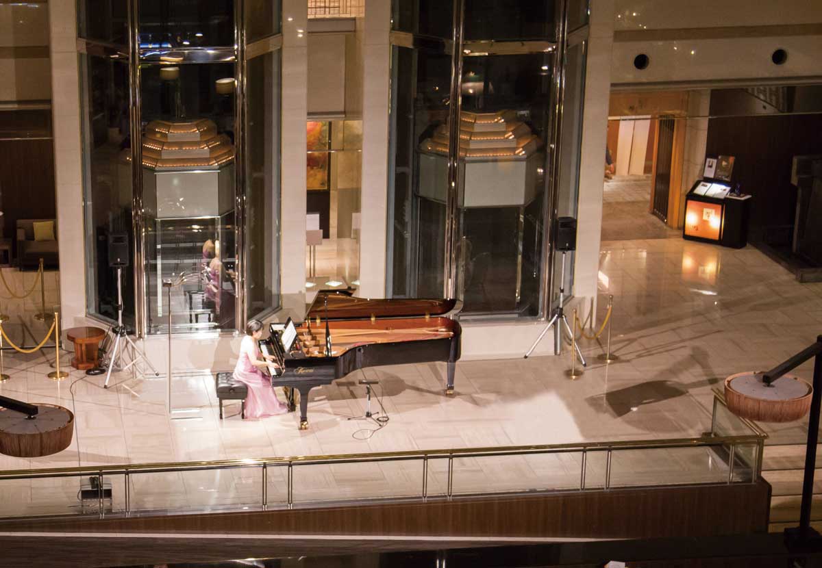 聖なる夜、吹き抜けのアトリウムロビーに響く美しいピアノの音色。