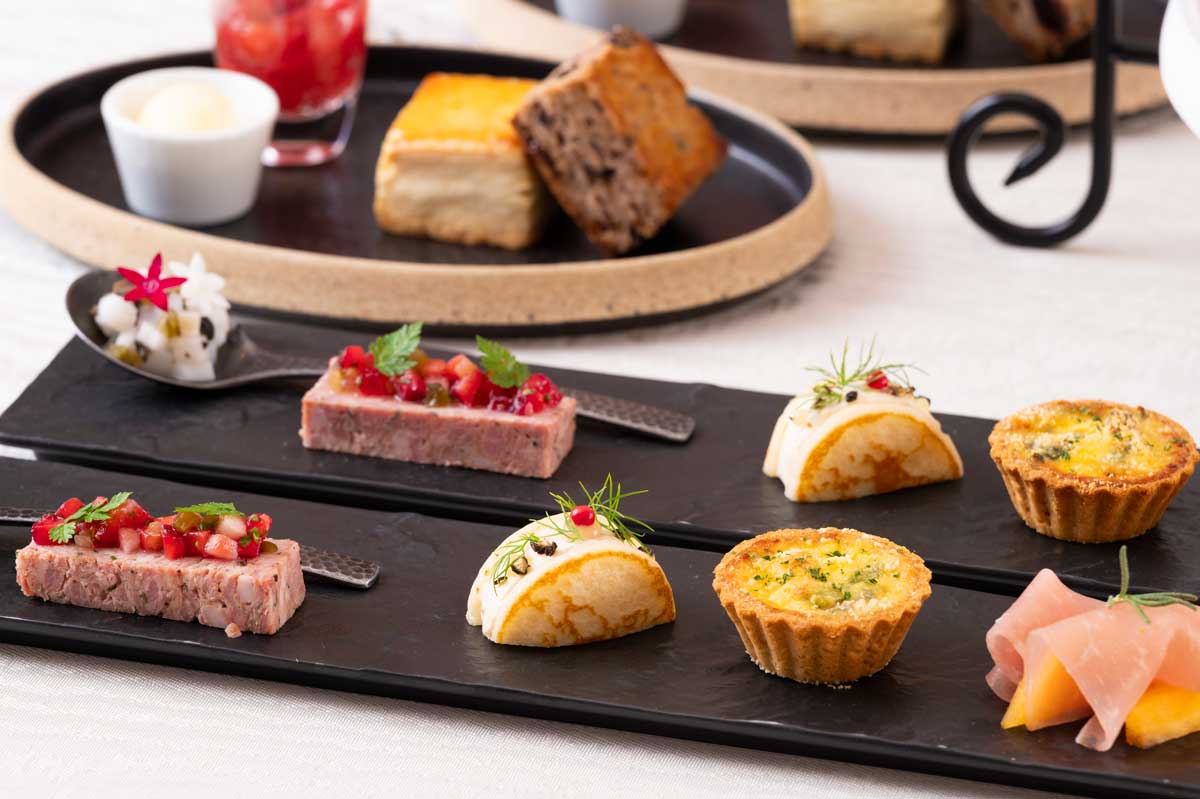 本格セイボリー冬はタラのブランダードや烏賊と蕪のサルピコン風などの本格セイボリーがラインナップ。〆パフェとティーフリーフローも付いた充実の内容です。