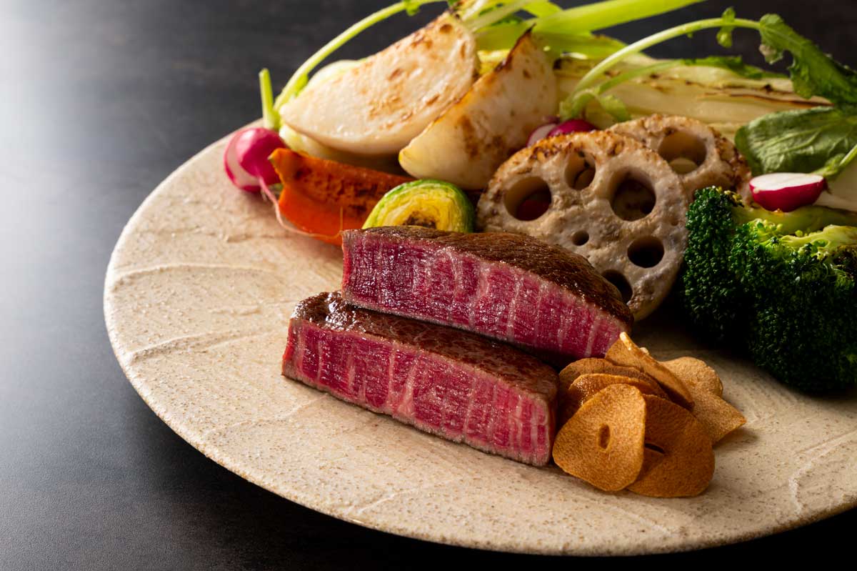 最大限に感じられる一品軟らかくとろけるような味わいが特徴の「くまもと黒毛和牛 和王」のフィレをじっくりと焼き上げる鉄板焼。料理人の腕が光る一品です。