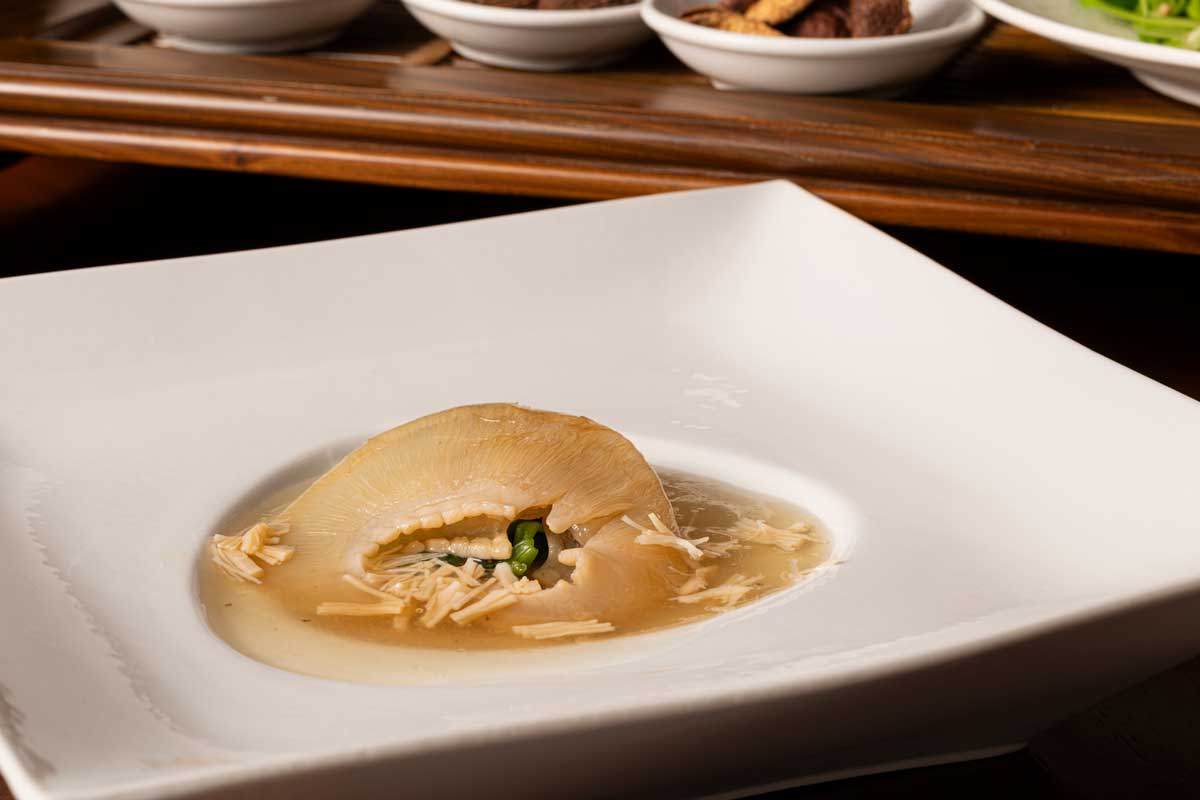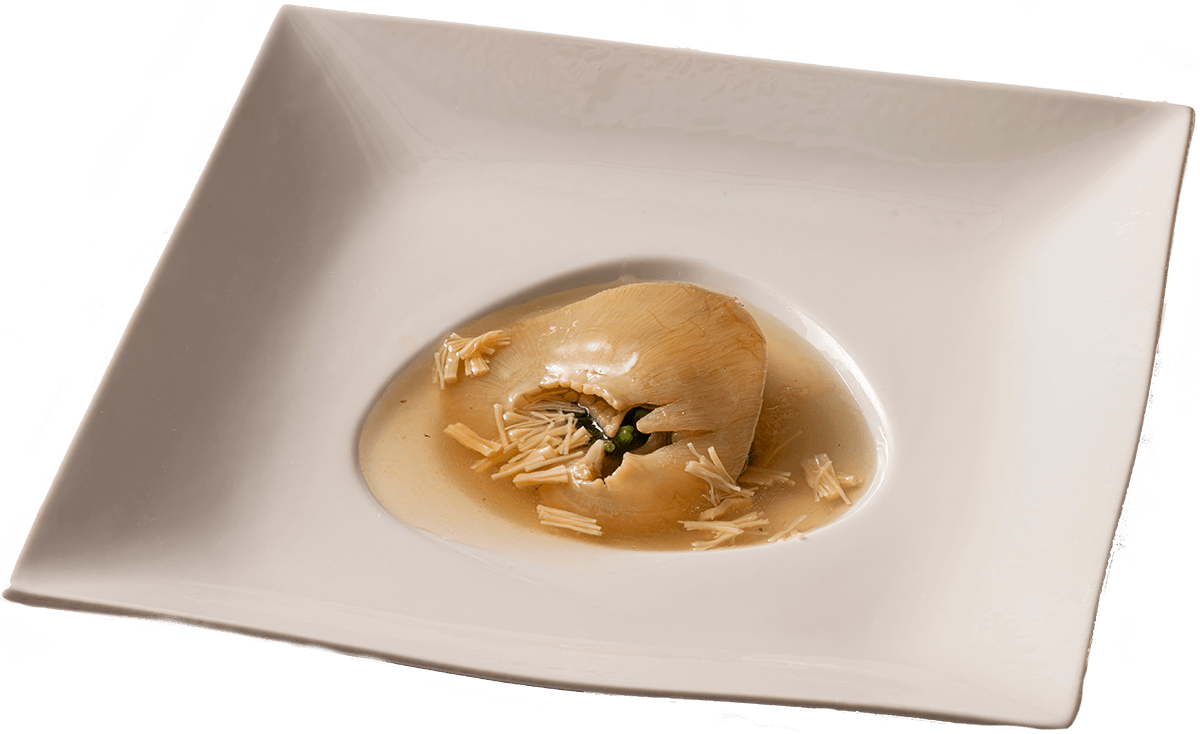 上質な仕上がりでなめらかな口当たりの吉切鮫のふかひれを贅沢にお楽しみください。繊維一本一本に干し貝柱の旨味たっぷりのスープが染みわたります。