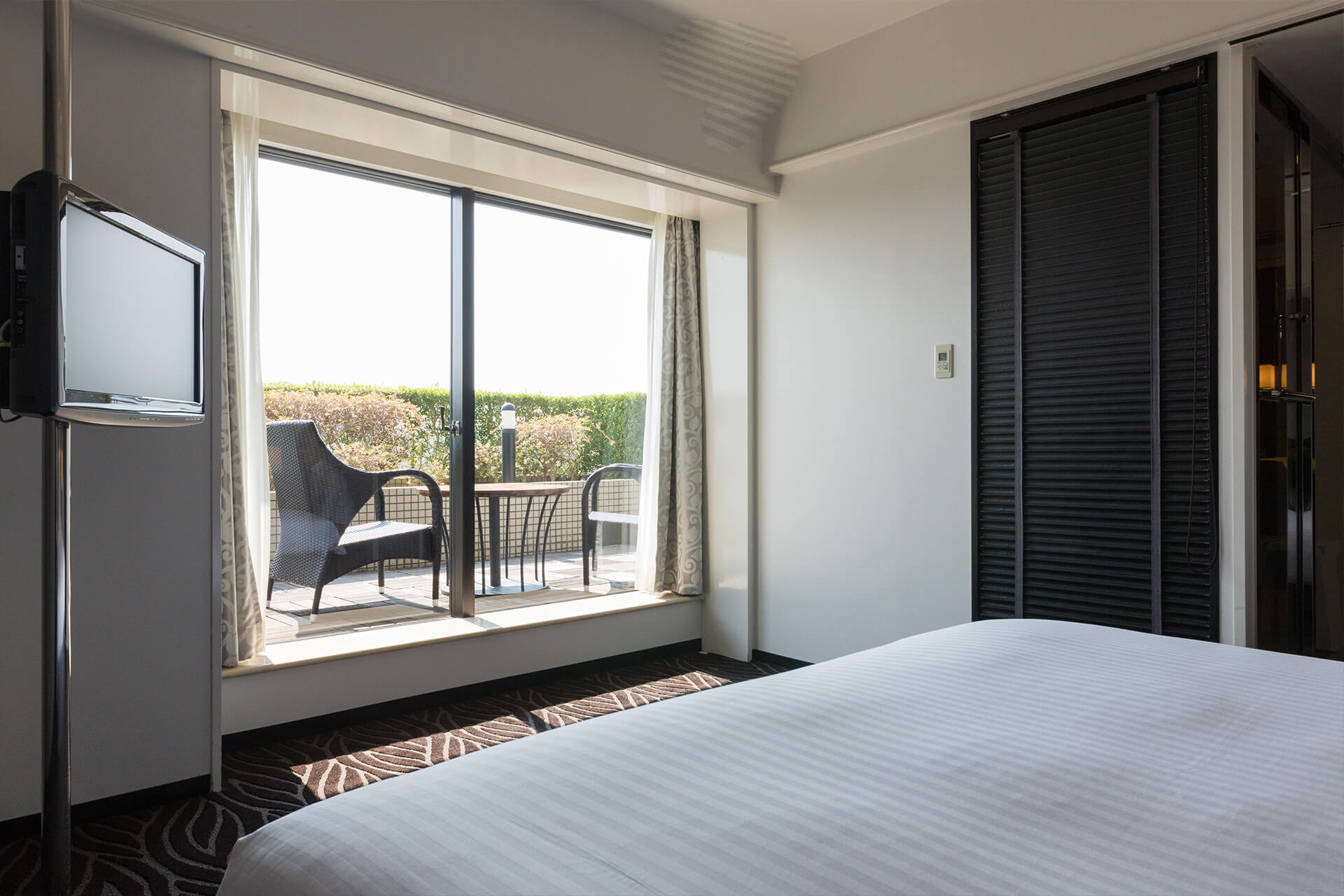 身も心も安らぐベッドと開放的なテラス