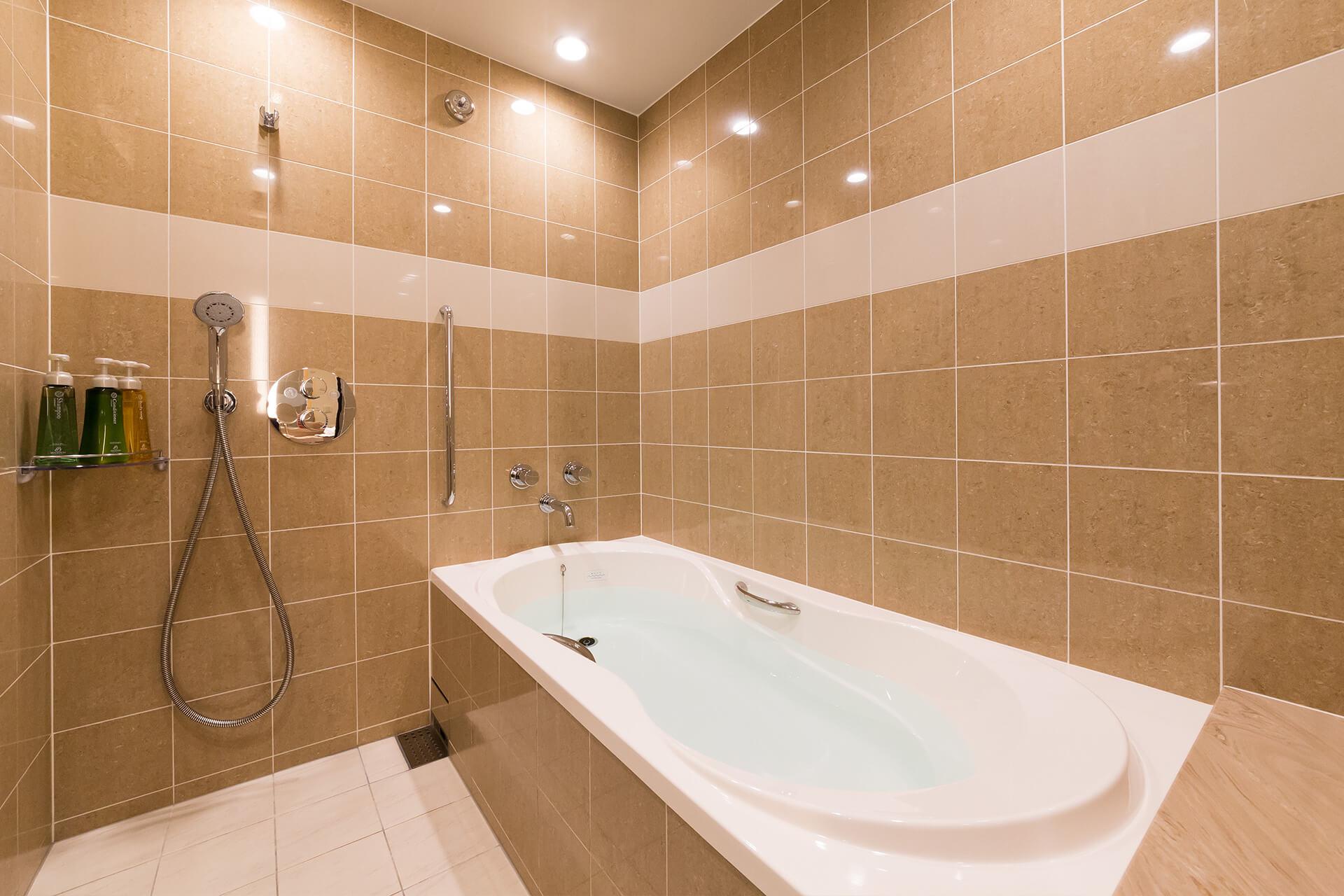 広く機能的なバスルームには、手足を伸ばしてゆっくりとくつろぐことができるよう大型のバスタブを採用。