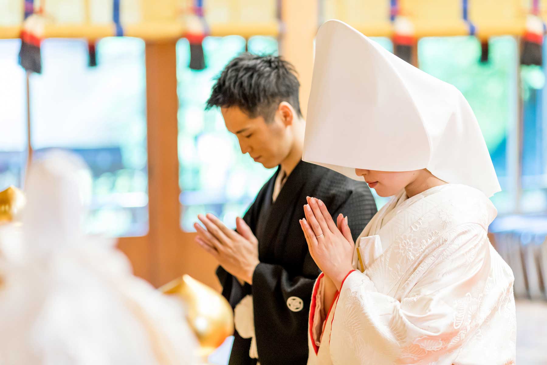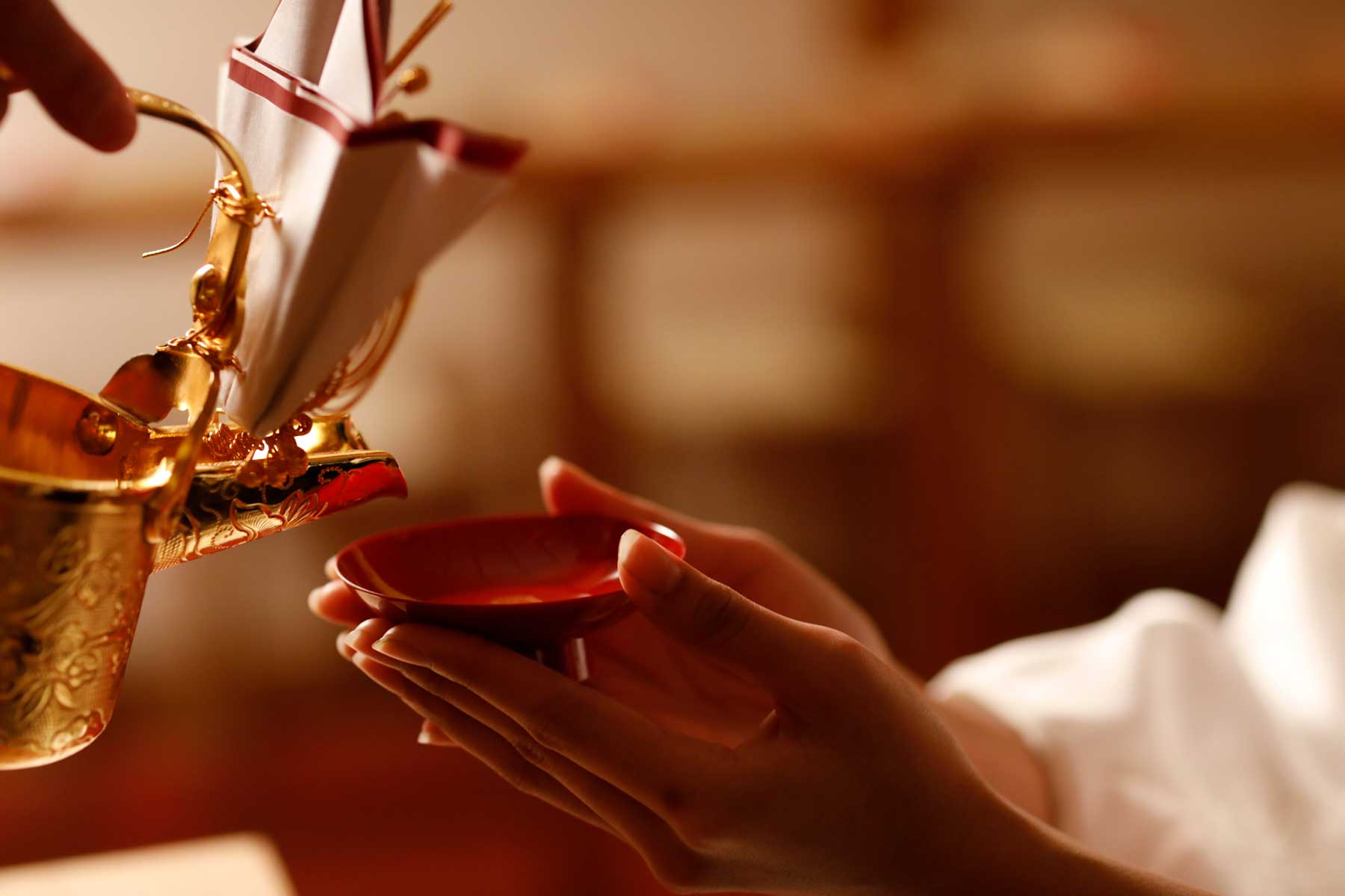 おふたりの結婚を神にご報告し、そのご加護を受ける神前結婚式。長い歴史の中、その地にあり続ける美しい社殿で、格調高い挙式が叶います。お衣装や美容、写真、送迎など、あらゆるサポートは、どうぞウェディングプランナーにお任せください。